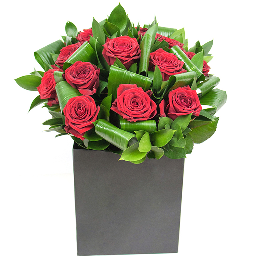 Send a timeless gesture of love and sophistication with our Infinite Beauty red rose arrangement from Flower Delivery Farnborough. This elegant design pairs luxurious red roses with sleek aspidistra leaves and glossy ruscus for a simple yet striking display that suits any modern home or special occasion.