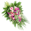 Discover refined elegance with our memorial tribute bouquet, a luxurious mix of nature’s finest flowers. The arrangement features a rich palette of soft pink roses, charming pink and purple gerberas, delicate white carnations, bold red hypericum, tender chamomile, and lush greenery.
